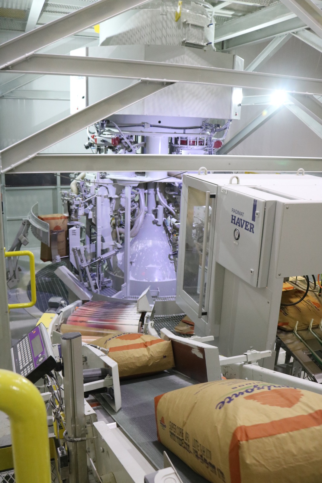 Automatização de ensaque na unidade de amidos, com instalação de enscadora rotativa. Capacidade de 800 sacas/hora.