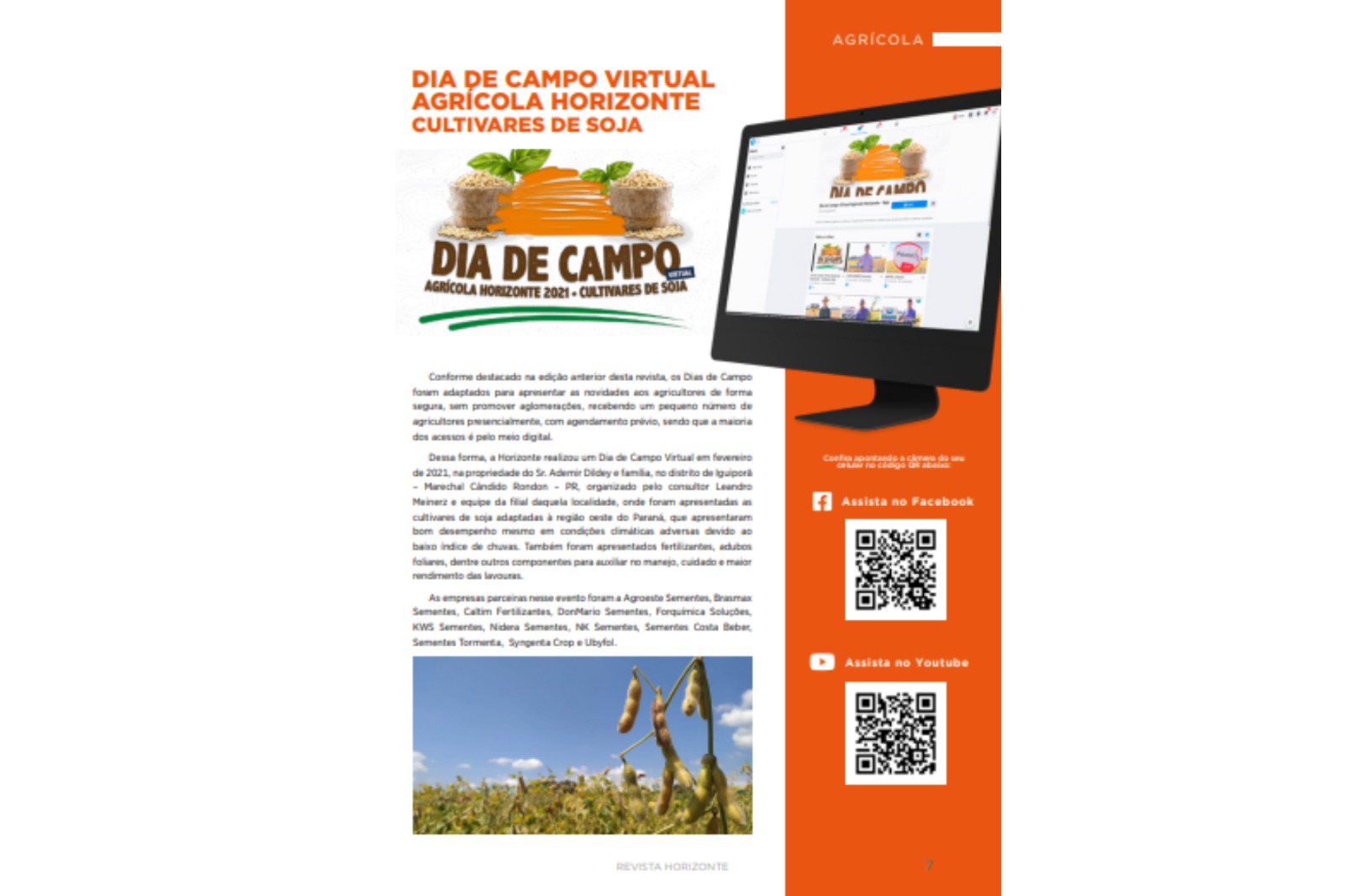 Realização do Dia de Campo Virtual, adequado com novas tecnologias para disseminação de conhecimento no setor agrícola.